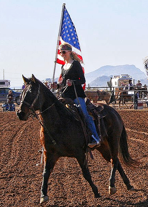 Whitney Alderson carries the American Flag during the Grand Entry Saturday January 8th, 2011